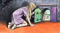 As I stated before the main inspiriation was Alice In Wonderland. Specifically the small door Alice confronts in the book when she becomes small. https://fineartamerica.com/featured/alice-in-wonderlan...